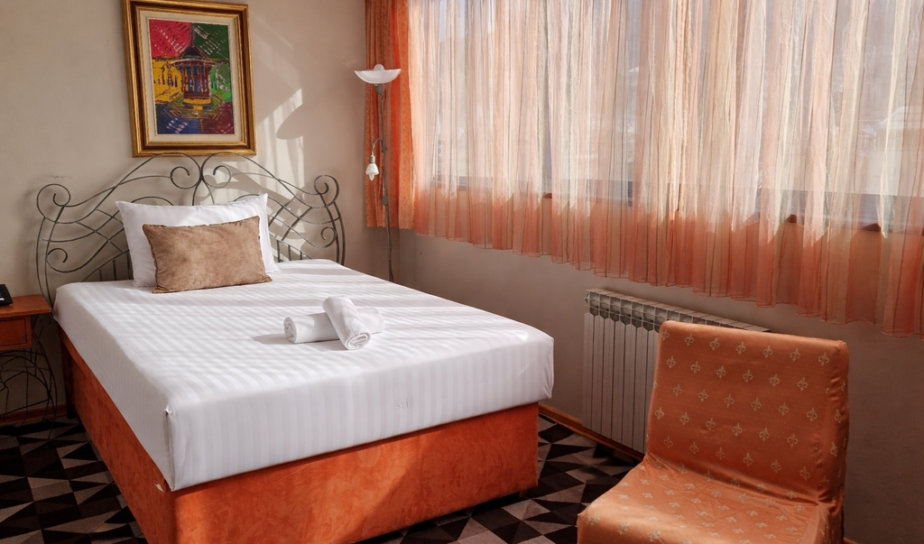 Udobna dvokrevetna soba namijenjena za dvije osobe, sa prostranim bračnim krevetom. Savršena za opuštanje nakon dana putovanja ili istraživanja grada.