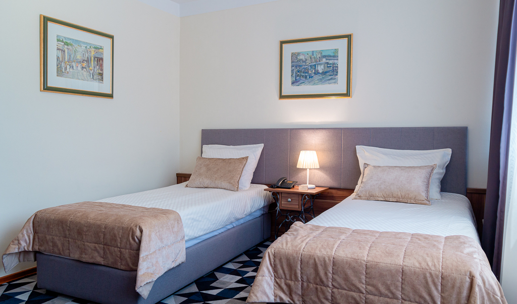 Two single beds / Bathroom / Air-conditioning / WiFi / TV / Mini-bar / Kettle for tea and coffee