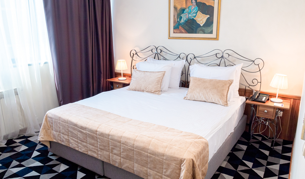 A comfortable double room designed for two guests, featuring a spacious double bed and modern amenities. Perfect for relaxing after a day of travel or exploring the city.